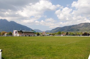 Un terrain d'honneur avec tribune et un terrain d'entraînement, avenue du Stade.